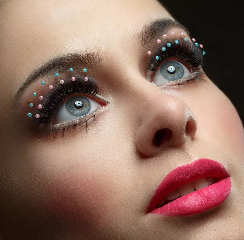 Равномерно распределить бусинки по всем ресницам. Такой дизайн больше уместен для вечеринок и фотосессий.